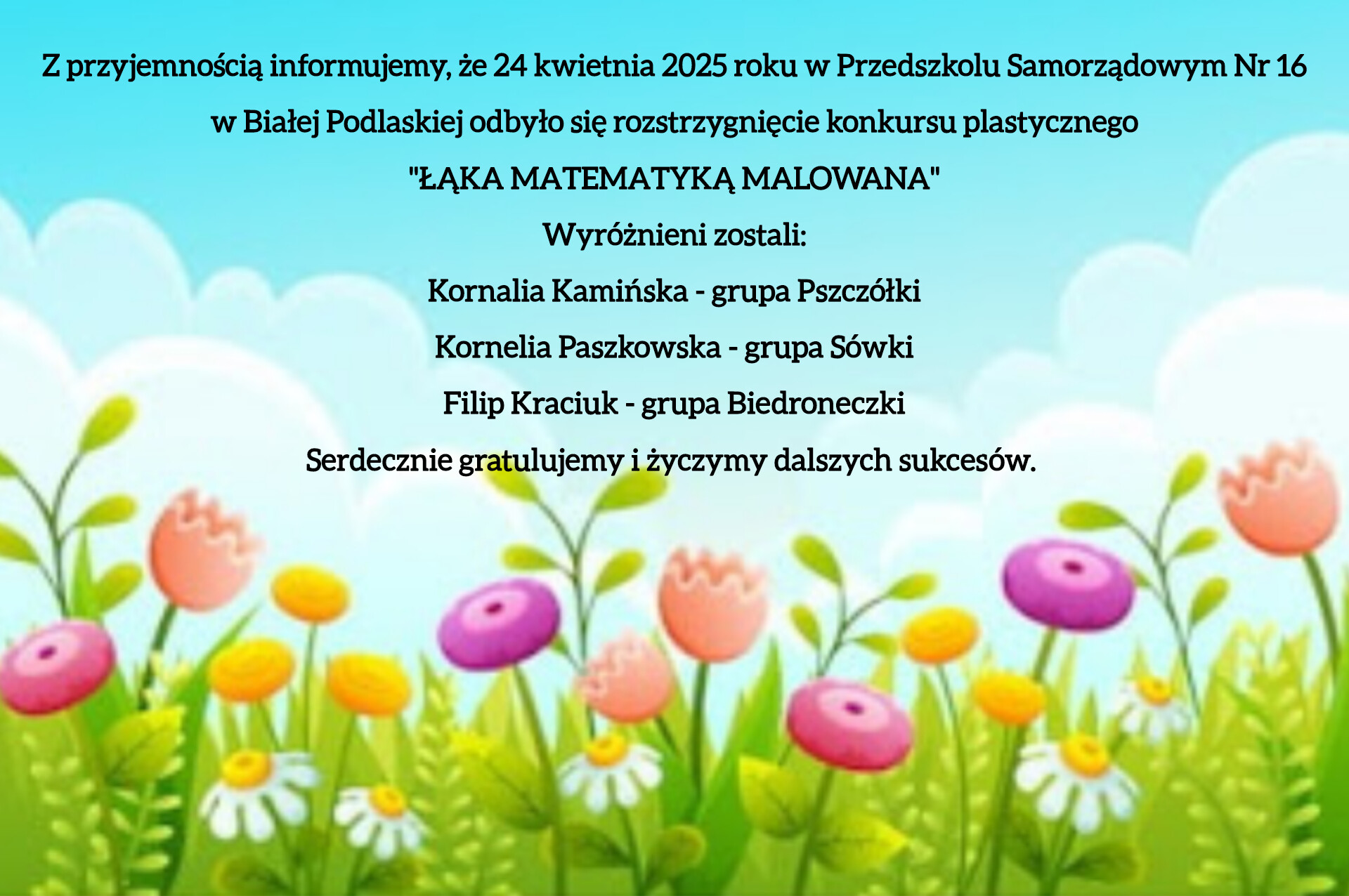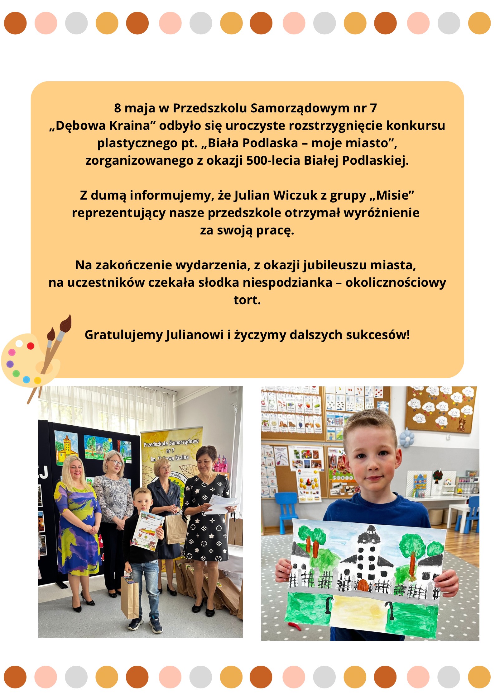 "BIAŁA PODLASKA-MOJE MIASTO" ROZSTRZYGNIĘCIE KONKURSU PLASTYCZNEGOOpublikowano: sobota, 10, maj 2025 14:51 | Super User | Drukuj | Odsłony: 336