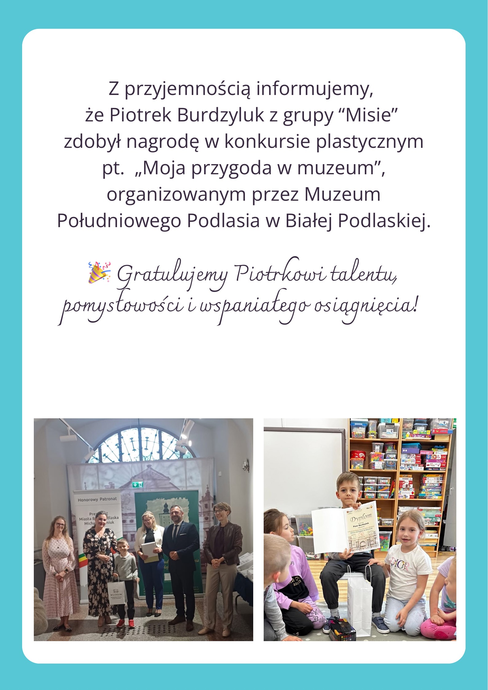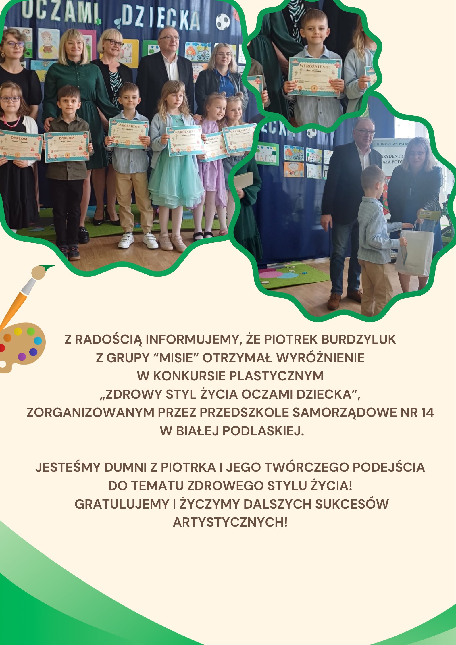 WYRÓŻNIENIE PIOTRKA BURDZYLUKA W KONKURSIE PLASTYCZNYMOpublikowano: niedziela, 01, czerwiec 2025 08:58 | Super User | Drukuj | Odsłony: 284