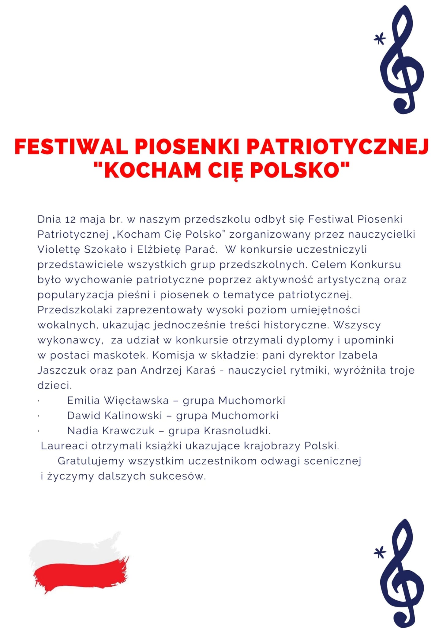 Jesteś tutaj: Start Archiwum Rok 2021/2022 Aktualności FESTIWAL PIOSENKI PATRIOTYCZNEJ "KOCHAM CIĘ POLSKO"