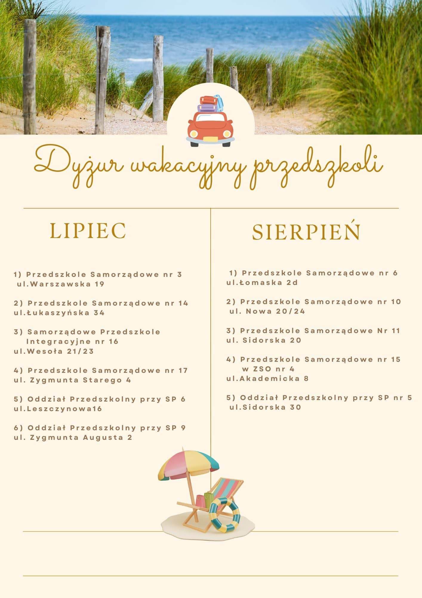 DYŻUR WAKACYJNY PRZEDSZKOLIOpublikowano: czwartek, 09, luty 2023 15:02 | Super User | Drukuj | Odsłony: 953 ORGANIZACJA PRACY PRZEDSZKOLI (KLIKNIJ TUTAJ)