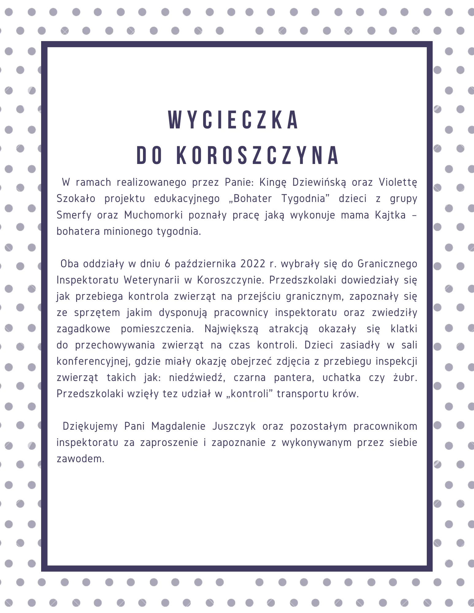 WYCIECZKA DO KOROSZCZYNAOpublikowano: piątek, 07, październik 2022 13:57 | Super User | Drukuj | Odsłony: 734 Galeria (kliknij tutaj)