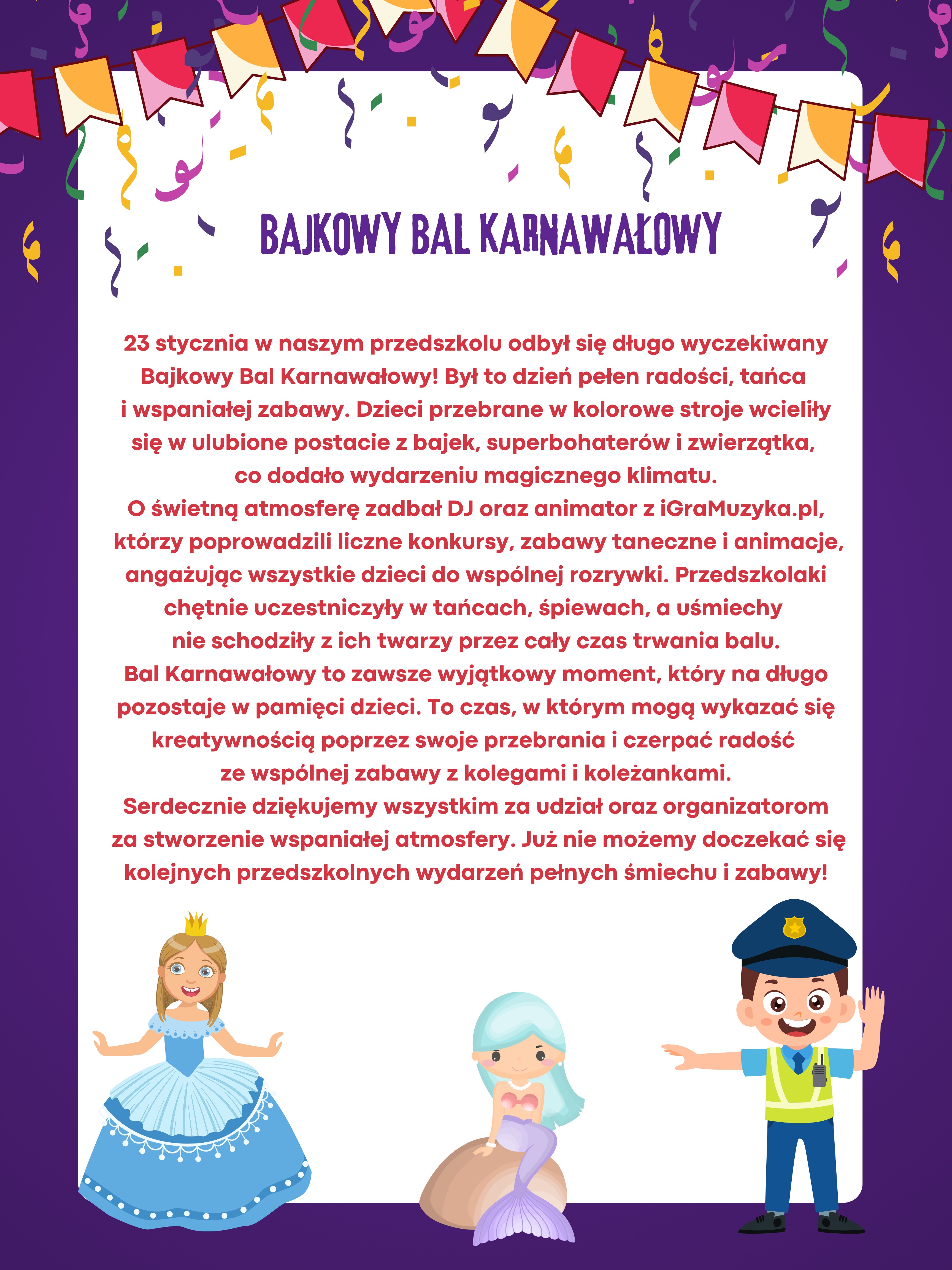 BAJKOWY BAL KARNAWAŁOWY 2025Opublikowano: niedziela, 02, luty 2025 20:27 | Super User | Drukuj | Odsłony: 539 FILM (kliknij tutaj) Galeria (kliknij tutaj) poprz. nast.